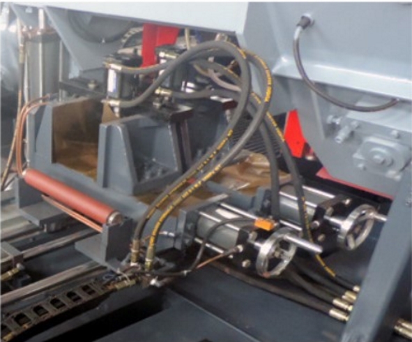 鋸床主要部件有:底坐、床身、立柱、鋸梁和傳動機構、導向裝置、工件夾緊、張緊裝置、送料架、液壓傳動系統、電氣控制系統、潤滑及冷卻系統。其操作簡單耐用,液壓系統和減速機均選用優質廠家提供,質量穩定。切削速度液壓控制,無極調速,方便快速。雙立柱結構,垂直升降,穩定性高。可根據用戶要求自行設定任意旋轉角度,可調角度在0°—45°/60°左右,操作簡單。鋸床工件加緊為液壓加緊,一鍵式加緊手柄操作方便快捷。